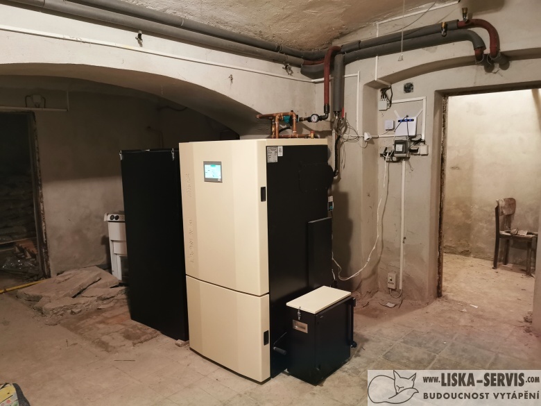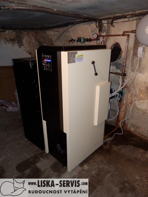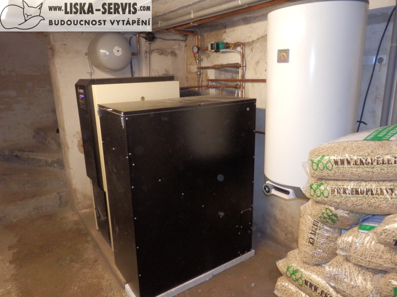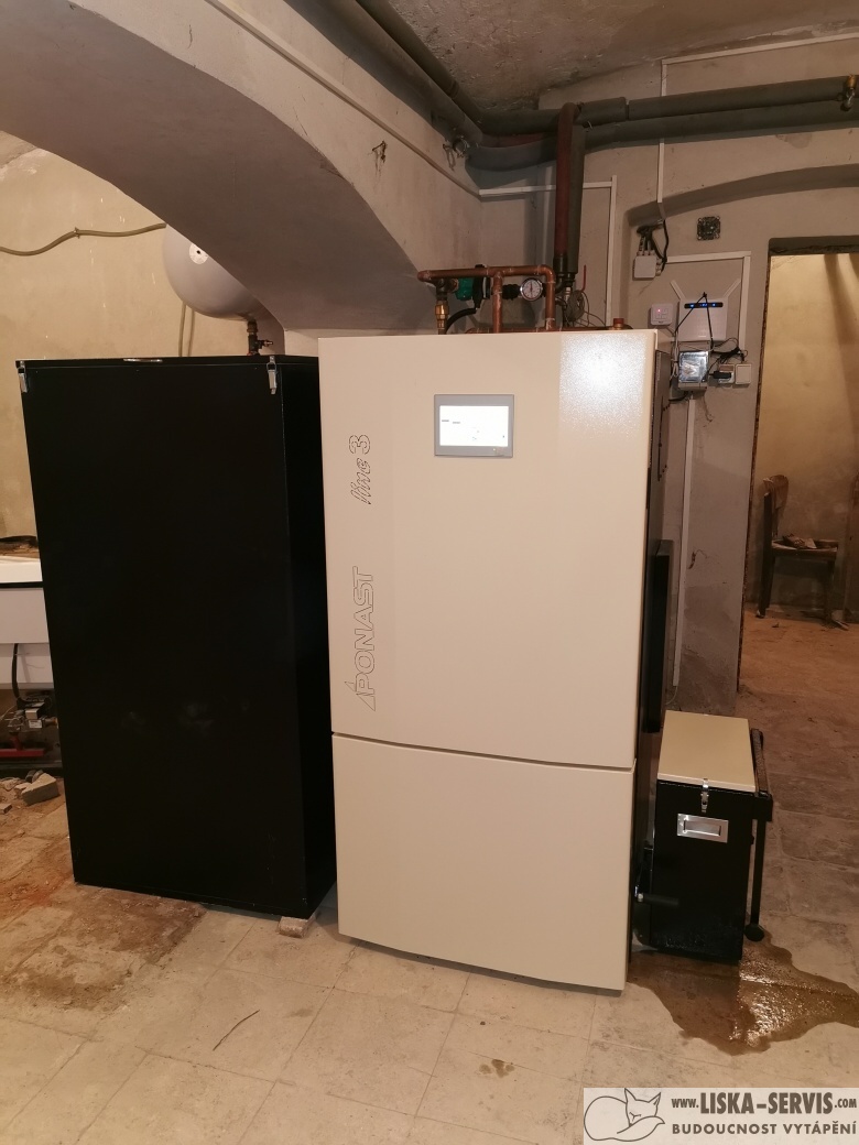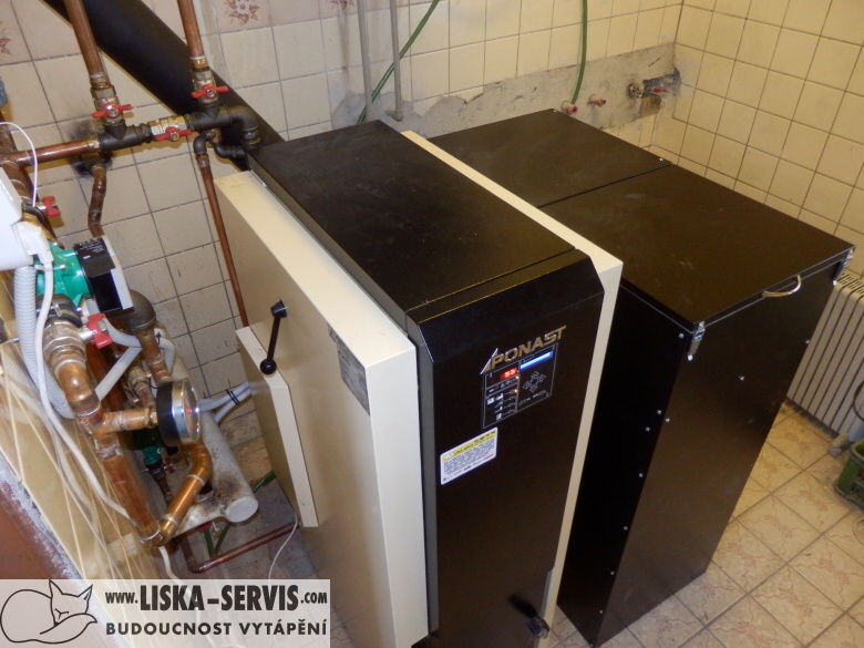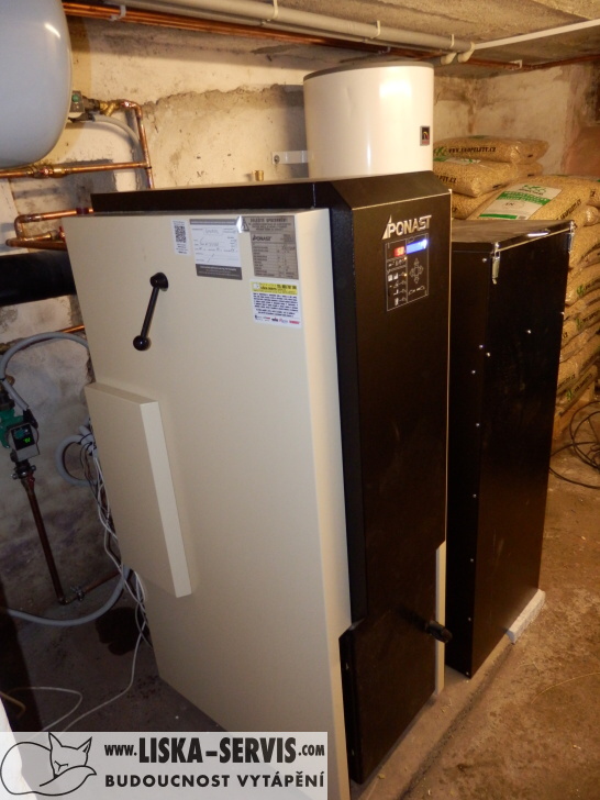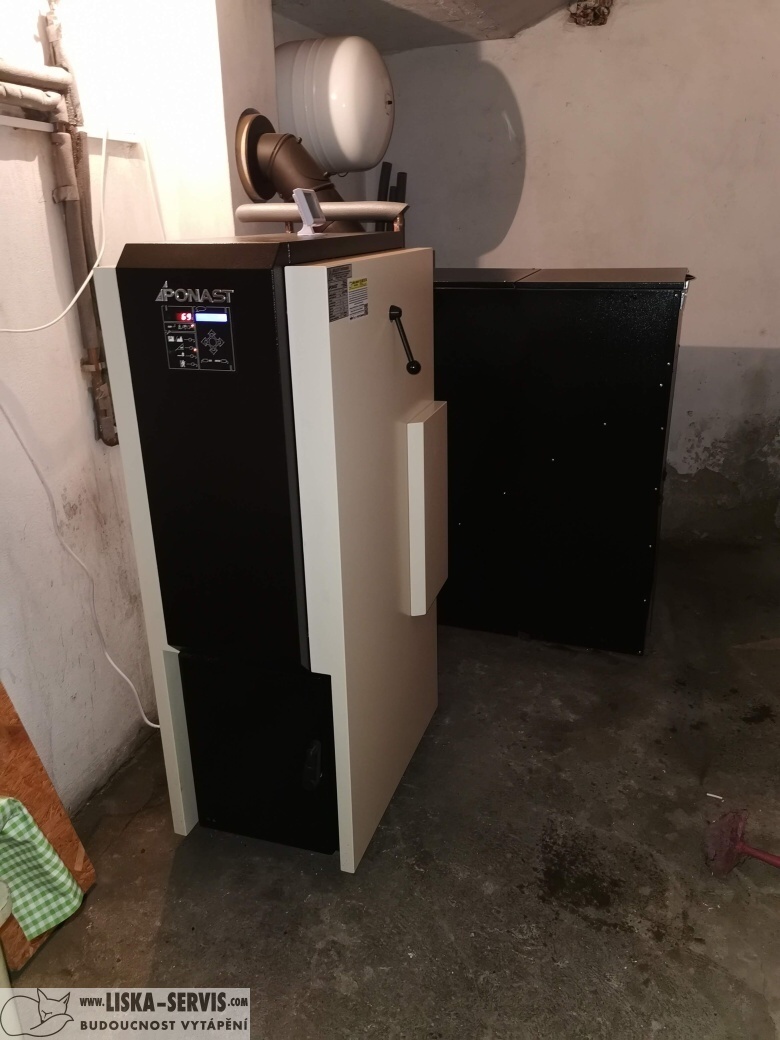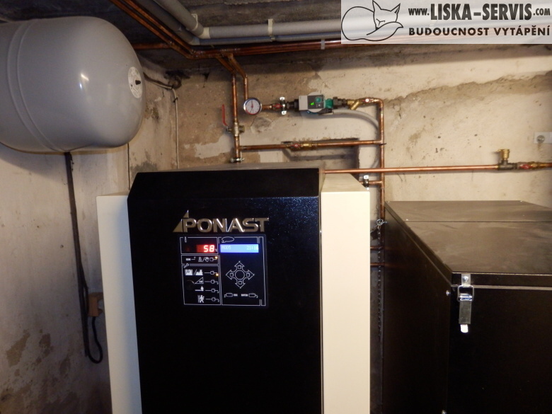 Jedná se o instalaci Automatického kotle Ponast KP11 na pelety , včetně přípravy teplé vody v kombinovaném ohřívači , Kotel je ovládán i vzdáleně přes intermet pomocí termostatu Honeywell