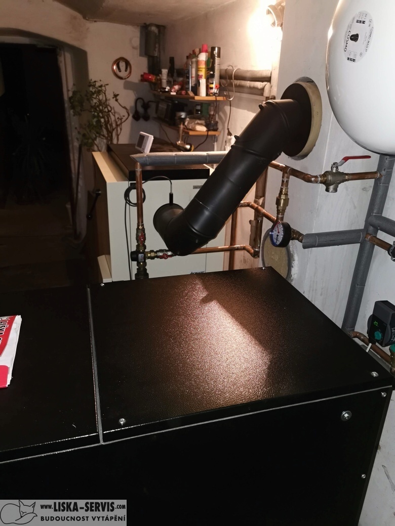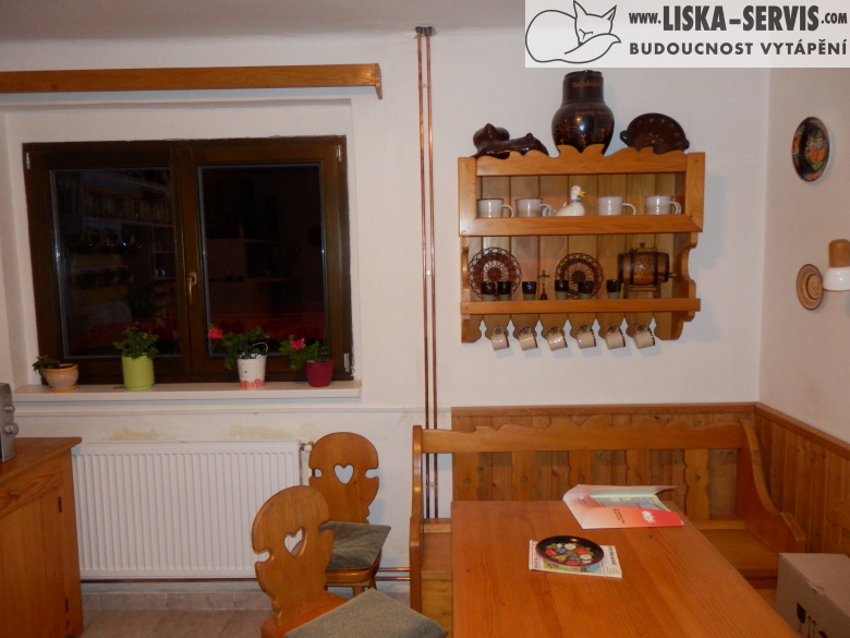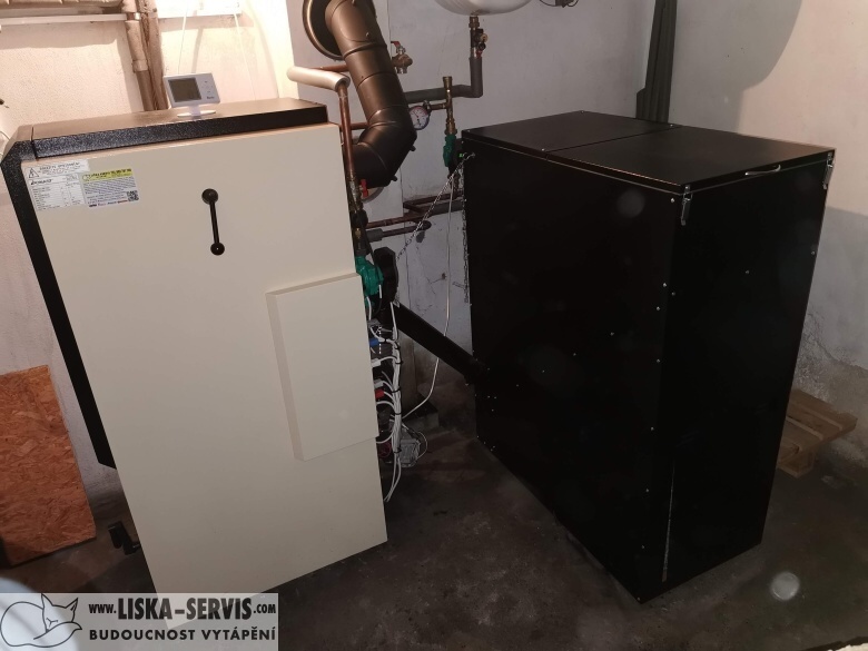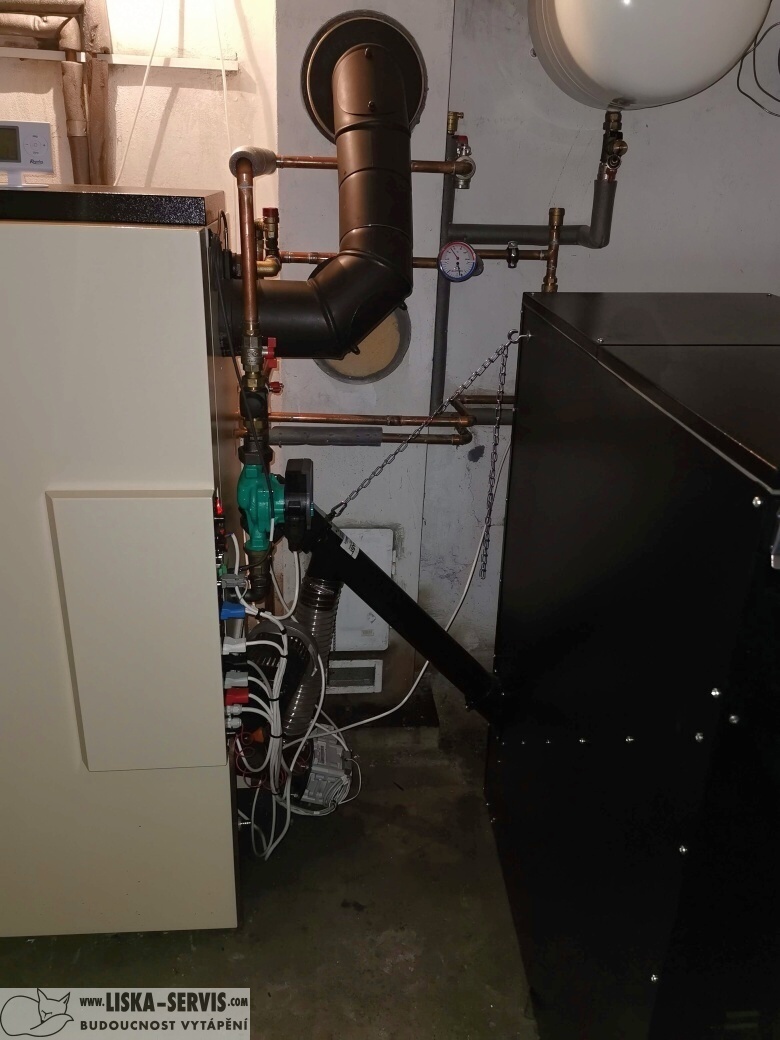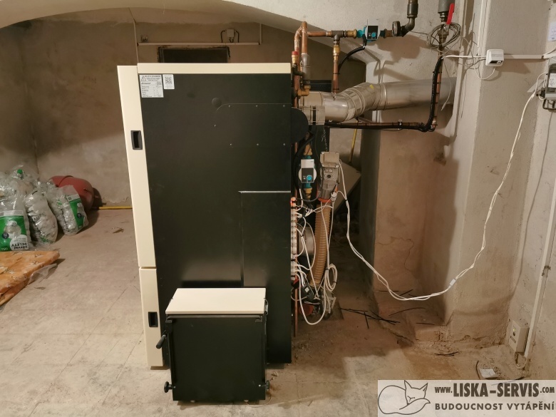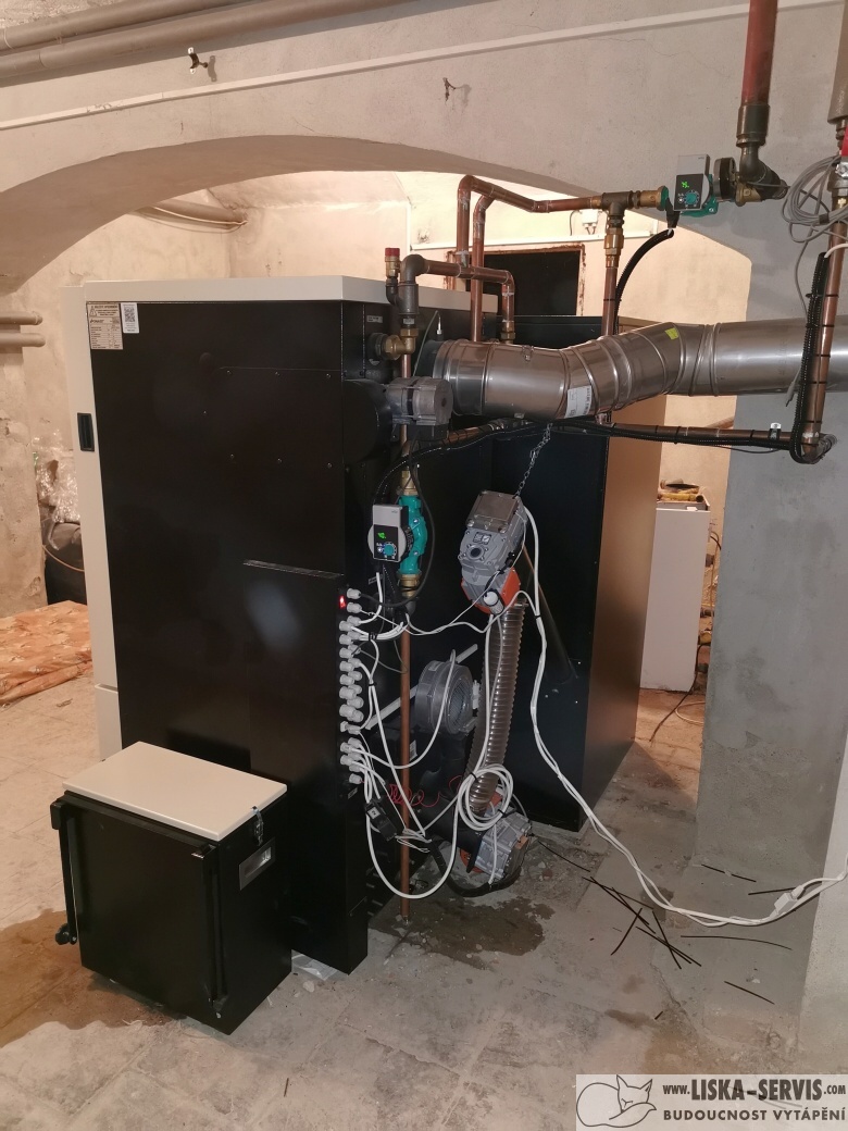 Jedná se o instalaci Automatického kotle Ponast KP11 na pelety , včetně přípravy teplé vody v kombinovaném ohřívači , Kotel je ovládán i vzdáleně přes intermet pomocí termostatu Honeywell
