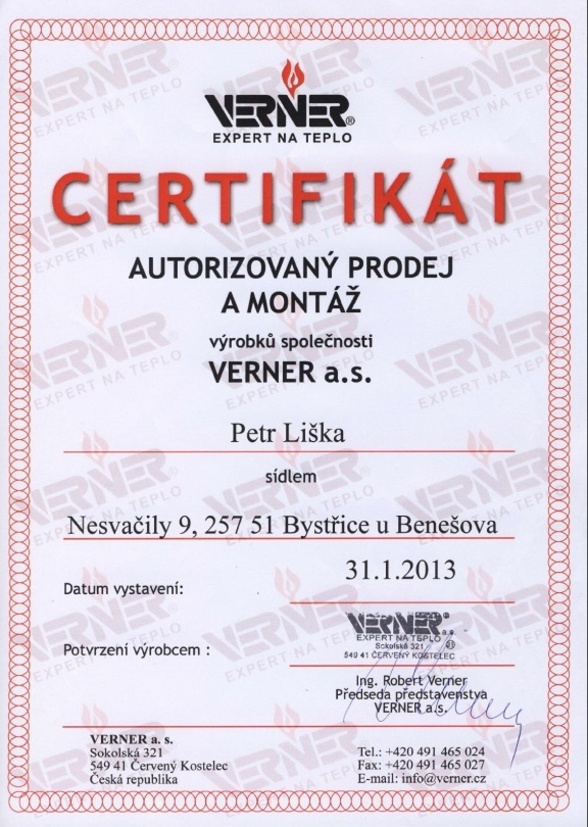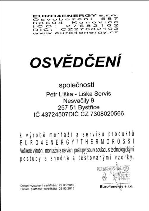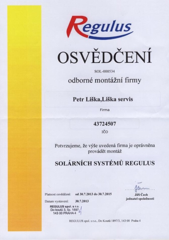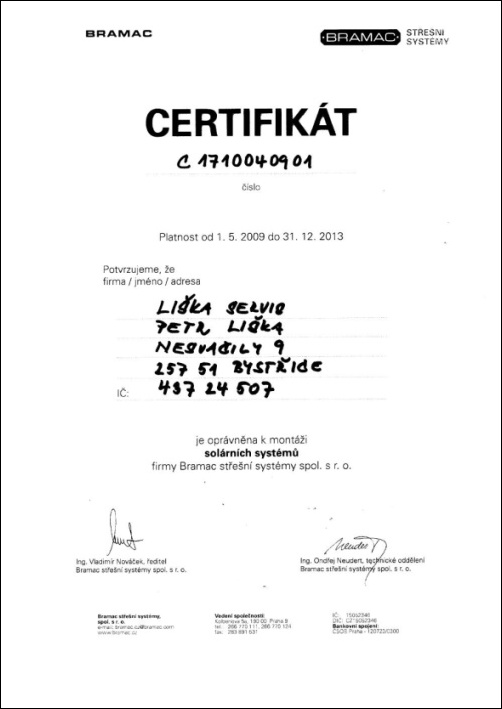 Jsme certifikováni jako odborný dodavatel topných a solárních systémů.