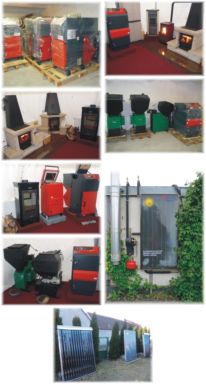 topení • vodoinstalace • kotle na dřevo • krbová kamna s teplovodním výměníkem a možností napojení radiátorů • automatické kotle na spalování uhlí, pelet, zemědělských produktů • regulace topných systémů • tepelná čerpadla • podlahové topení • elektrokotle • akumulační kotelny • sluneční kolektory • bazénové výměníky • podlahové topení • domácí vodárny • záložní zdroje k čerpadlům při výpadku proudu • prodej, montáže, servis a revize po celé ČR • paliva • odborné konzultace zdarma