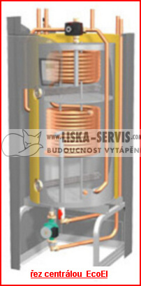 Kompaktní vnitřní jednotka EcoEl v sobě skrývá prakticky celou kotelnu, zajišťuje vytápění i přípravu teplé vody