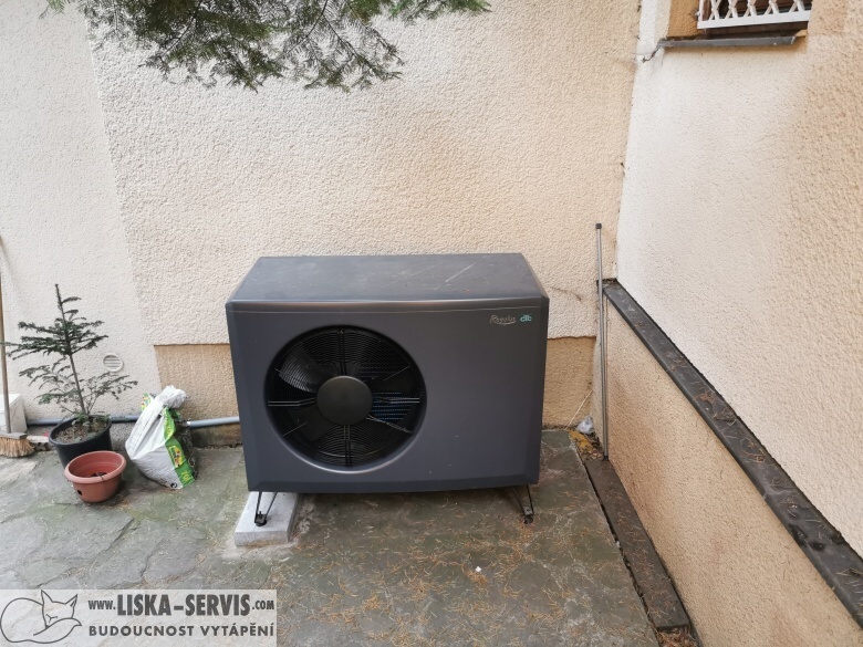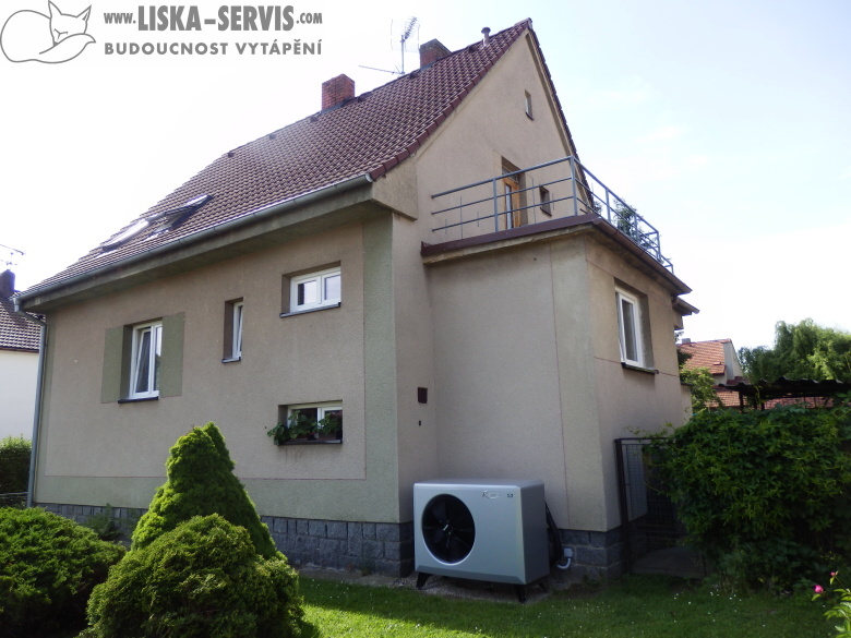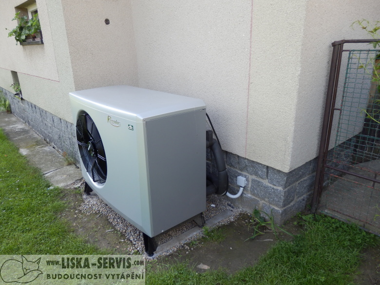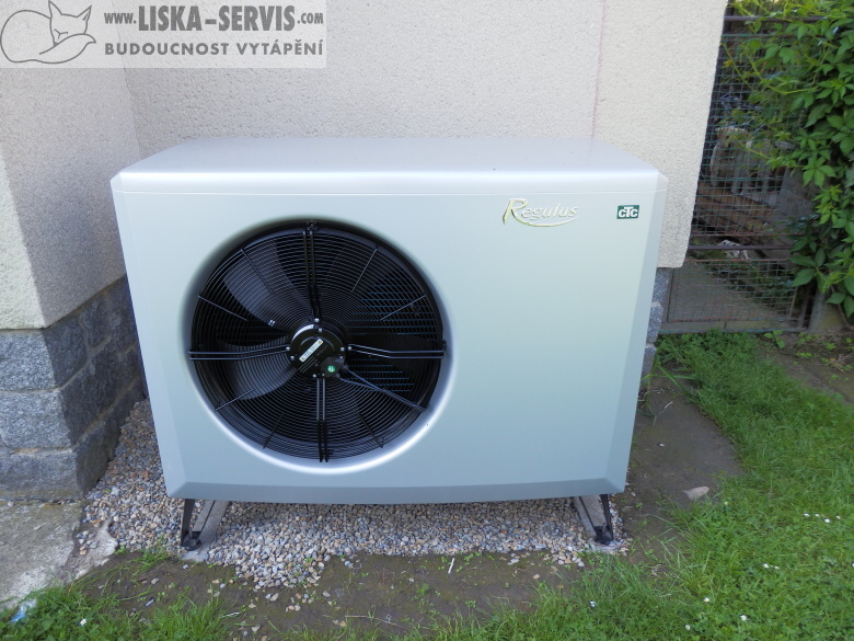 tepelné čerpadlo CTC ECOAIR 408 zajišťuje vytápění rodinného domu prostřednictvím radiátorů + ohřev vody v Akumulační nádobě DUO 390/130 KP s vnořeným zásobníkem teplé vody