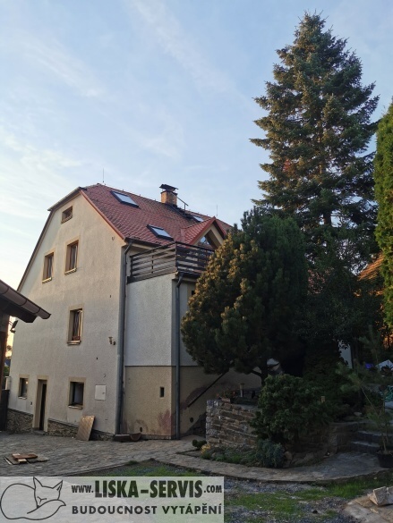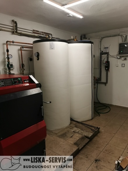 tepelné čerpadlo CTC ECOAIR 415 plus dřevokotel Verner VN25D nerez, zajišťuje vytápění rodinného domu prostřednictvím radiátorů + ohřev vody v Akumulačních nádobách, z nichž jedna je typ DUO 1000/200 KP s vnořeným zásobníkem teplé vody