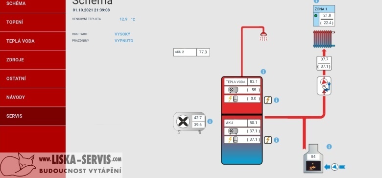 Tepelné čerpadlo je řízeno Regulátorem IR 12 s plným přístupem a správou přes internet pomocí služby REGULUSROUTE