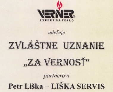Zvláštní ocenění 2024 „ Za Věrnost“ - za záslužnou činnost při propagaci, prodeji a servisování výrobků Verner