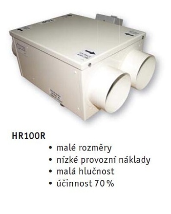 HR100R je prostorově nenáročná rekuperační jednotka určená k větrání bytů nebo několika místností rodinných domů. Vzhledem k jejím rozměrům je instalace velmi jednoduchá a jednotku je možné umístit i do velmi malého prostoru (např. do skříňky, do podhledu, apod.). Pro rozvod vzduchu se používá potrubí o průměru 100 mm. Montáž systému s jednotkou HR100R je jednoduchá a rychlá. Model s označením HR100R je možné pouze položit na konstrukci. Montáž na stěnu není možná. Model s označením HR100RS je možné zavěsit pod stropní konstrukci.