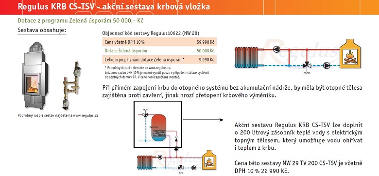 Akční set Regulus KRB CS-TSV krbová vložka a čerpadlová skupina za 9 990,- Kč včetně DPH 10 % a po odečtení dotace z programu Zelená úsporám.