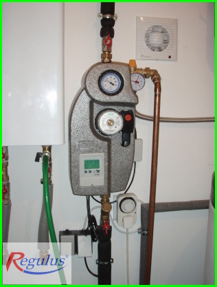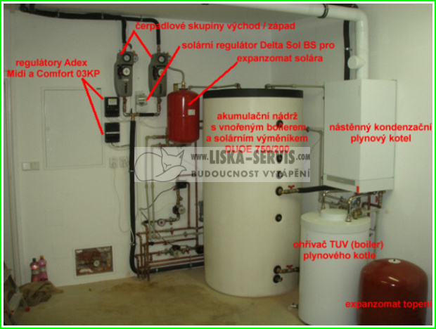 Centralizuje ohřátou teplou vodu z interiérového kotle a kolektorů, touto ohřívá TUV prostřednictvím vnořeného boileru a dále zajišťuje vytápění domu pomocí radiátorů. V případě že voda v boileru je nedostatečně ohřátá tuto předehřívá pro dohřátí v "serii" zapojeného ohřívače TUV plynového kotle