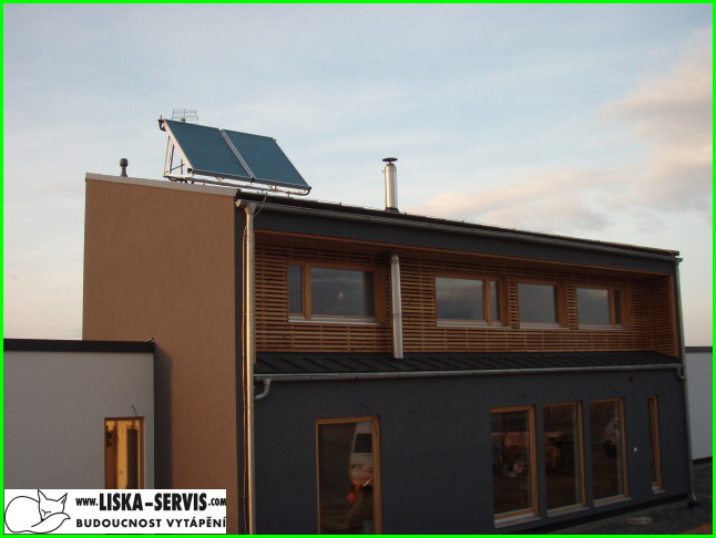prioritu provozu má samozřejmě topení dřevem v interiérovém kotli Verner a sluneční vakuové kolektory REGULUS s velkým výkonem i v podmračném počasí a i v zimě